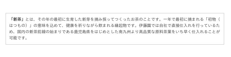 秋から貯えられた養分が詰まった新茶は、旨みの成分(アミノ酸)が多く含まれており、新芽独特の爽やかで清々しい香りと濃厚な味わいが特長です。お客様のお好みの飲み方で旬の味わいをお楽しみいただけるよう、ドリンク製品「お~いお茶 新茶」525mlペットボトル、リーフ製品「お~いお茶 新茶」100g、「お~いお茶 プレミアムティーバッグ 新茶」20袋をラインアップしました。年に一度の“旬の贅沢”として、華やかな存在感のあるパッケージデザインを採用しています。「お茶の伊藤園」ならではの原料調達力と茶製品生産技術を総結集し、新茶の摘み採りからいち早くお客様のもとへお届けいたします。