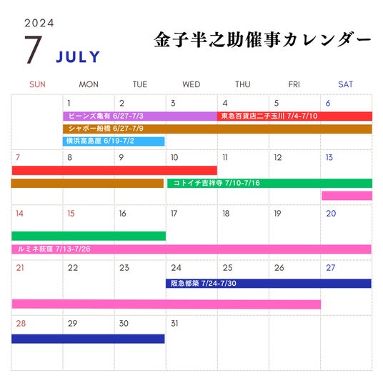 2024年7月5日現在の催事出店予定