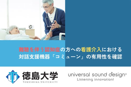 ユニバーサル・サウンドデザイン株式会社(本社:東京都港区 代表取締役:中石 真一路 、以下『ユニバーサル・サウンドデザイン』)の代表取締役・中石真一路は、徳島大学大学院医歯薬学研究部の千葉進一准教授率いる研究チームと共に、対話支援機器「コミューン」を用いた難聴を伴う認知症の方への看護介入が、認知機能や認知症に伴う行動・心理症状、生活の質(QOL)にどのような影響を与えるかを検討した研究成果を、四国医学雑誌にて発表しました。この研究は、コミューンを使用した看護介入が認知症の方の認知機能や認知症に伴う行動・心理症状、生活の質、また看護師の負担軽減に寄与する可能性を示しています。