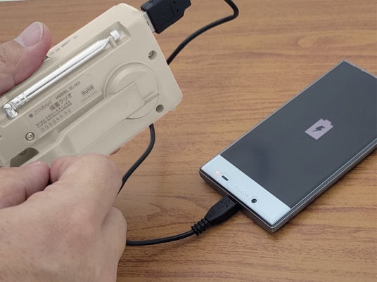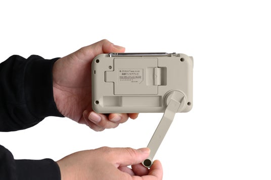 ■電源:手回し充電/ACアダプター(別売り)/単3形乾電池×2本(別売り)/モバイルバッテリー(別売り)