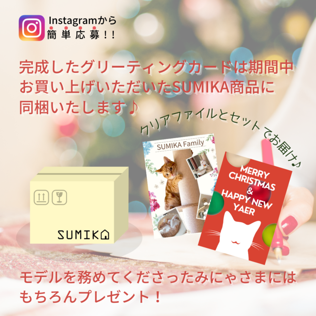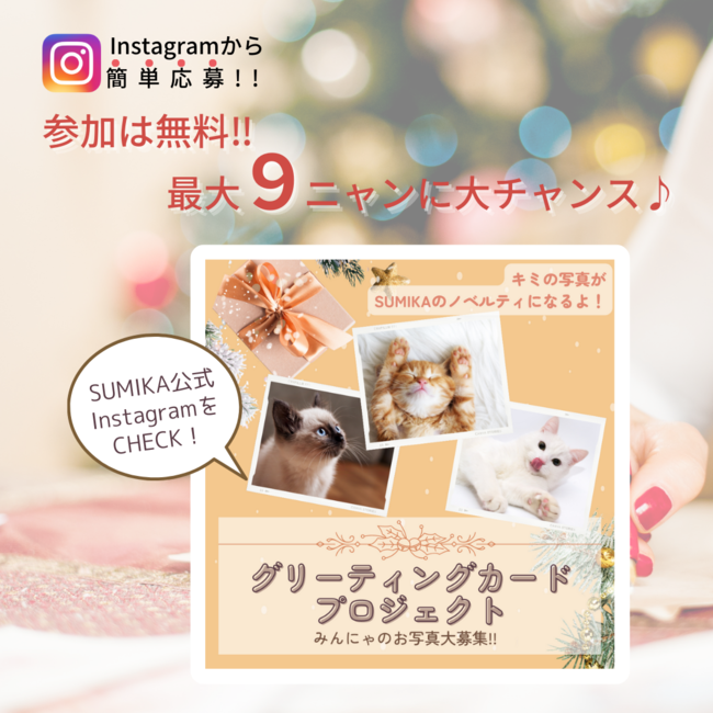 2022年も残すところあと2か月。早くもクリスマスギフトを選ぶ季節…そこでSUMIKA公式Instagramでは、年末年始を可愛く楽しく彩る企画として、クリスマス&お正月のご挨拶にご使用いただけるSUMIKAオリジナルグリーティングカード企画がスタート!今回はこちらのモデルとなってくださる猫ちゃんを大募集いたします♪