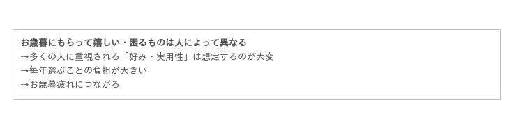 全体を通してわかるのは、下記のような「お歳暮特有の難しさ」です。