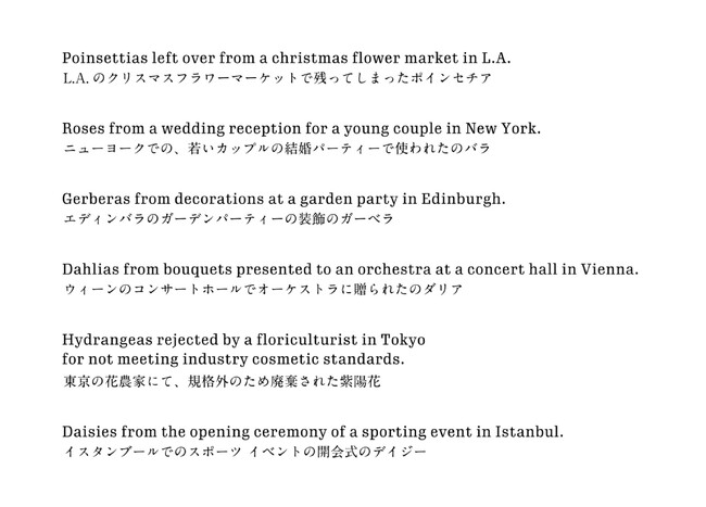 花を通した豊かさの向上を目指し、「花のある生活を文化にする」ことをミッションに掲げています。まだ美しいのにも関わらず廃棄されてしまう花「ロスフラワー(R)」に新たな命を吹き込む活動を、全国のフラワーサイクリストと共に行っています。