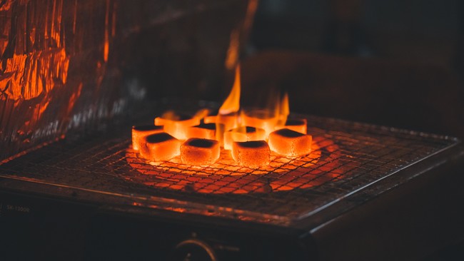 灼熱で煙モクモクの中、炭を焚べる姿をシーシャと重ね、力強くタフな一足に。