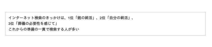 ◇検索のきっかけは、1位「親の終活」、2位「自分の終活」、3位「葬儀の必要性を感じて」