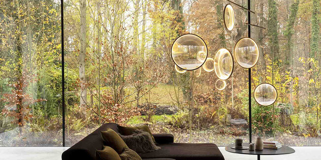 沖津雄司がデザインし、フランスの照明ブランドDCW éditions PARIS により製品化された照明作品「FOCUS」は、2018年のミラノサローネで、また国内では同年のDESIGNART TOKYO にAXISにて初公開され、モビール状に吊った複数の平らなレンズにLED照明を組み合わせたインテリアオブジェとして発表されました。その場の環境を織りなす 光・空気・風景の各要素に改めて焦点を当て再構築することにより、環境の変化に呼応した新たな光景を絶えず空間に作りだします。今回のコラボレーションにより、より洗練されコンセプトが更に際立つプロダクトを実現しました。