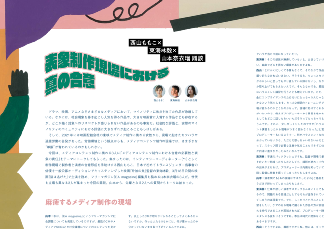 メディアコンテンツ制作に携わる、西山ももこ、東海林毅、山本奈衣瑠の3人が真の合意とは何か?「合意の必要性と表象の責任」をテーマにトーク。
