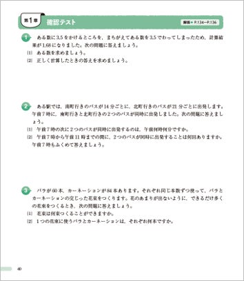 「文章題練習帳シリーズ」は、「例題」「練習」「確認テスト」の3ステップで構成される問題集です。