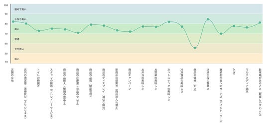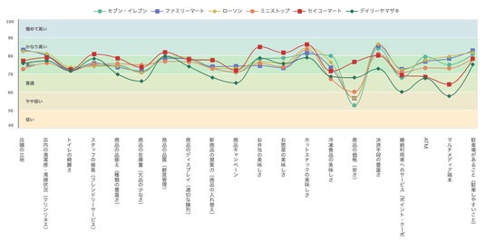 「商品の価格(安さ)」を除いて、全般的に顧客満足度が高いのが、コンビニ業界の特徴と言えます。