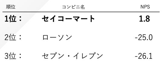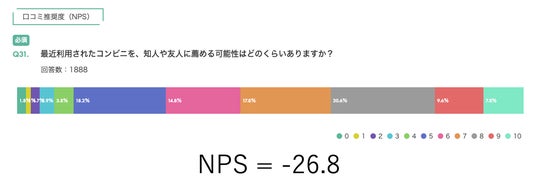 コンビニ業界のNPS(ネット・プロモーター・スコア)は、-26.8でした。この結果は、他業界と比べると、良い結果と言えると思います。