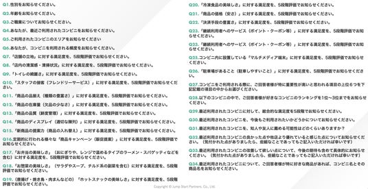 「よく行くコンビニの満足度調査」の質問内容は、以下の通りとなります。