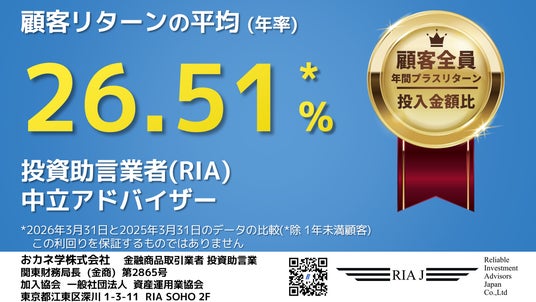 2025/3/31と2026/3/31を比較した顧客の年間リターン平均は26.51%*4でした。