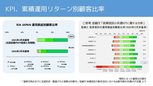 資産運用のアドバイスに特化する中立アドバイザーで、証券会社などから手数料・キックバック等を受け取らず、投資助言を提供するRIA JAPANは、2026年3月末時点での顧客計数を公表しました(速報値)。
