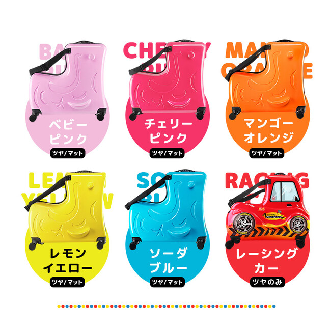 L字型の形状で安全ベルト、足置き、ハンドルがついており、子どもを乗せたままスムーズに移動ができるキャリーケース。