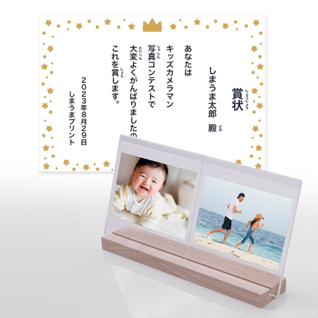 キッズカメラマンとして入賞した記念に、ご応募いただいた作品を写真プリントして賞状とセットでお届け!