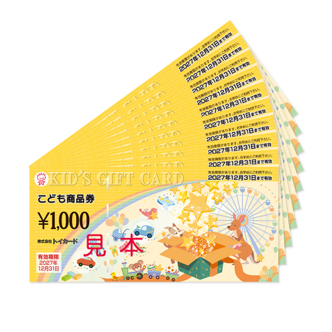 全国の百貨店、スーパー、専門店等の加盟店でおもちゃ、ベビー子ども用品、文具等に利用できる商品券。