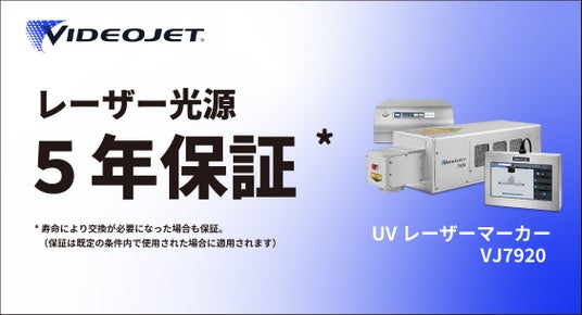 レーザーマーカーに内蔵されている「レーザー光源」は消耗品であり、ユーザー様の使用方法や現場環境によって寿命が変わります。多くのユーザー様にとって新しい技術である UV レーザーマーカーを安心してご利用いただけるように、ビデオジェットでは Videojet 7920 のレーザー光源を5年間保証する「Videojet SourceSecure(TM)(ソースセキュア)」を提供します。本サービスのために別途料金をお支払い頂く必要はありません。