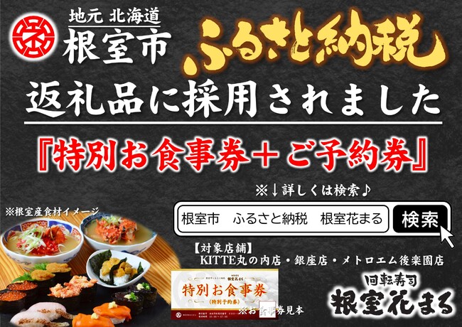 新鮮で良質な海の幸に恵まれた根室市。魚介製品だけでも1900品以上ある「返礼品」の中から、2022年7月より採用された「根室花まる特別お食事券(席予約付)」が、大変好調なスタートを切っております。