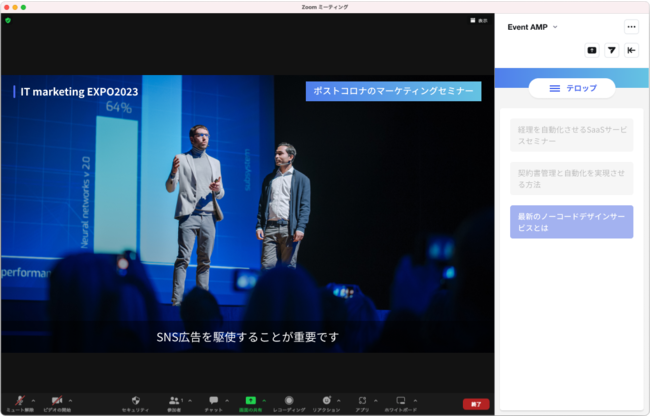 一方、基本的にオンライン配信や画面共有がメインのZoomでは、表示したい情報が限定される課題があります。
