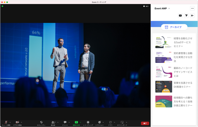 Zoomの画面でアーカイブ配信や視聴ログの取得が可能に。Zoomの配信URLをそのまま利用できるため、後から見たい場合も1クリックでご案内できます。
