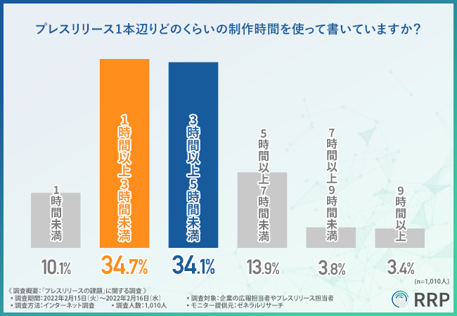 1本のプレスリリースの平均制作時間として、1時間以上~5時間未満の時間を要することが明らかになりました。