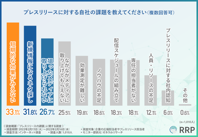 今回の調査で、広報担当者やプレスリリース担当者のプレスリリースの課題が明らかになりました。