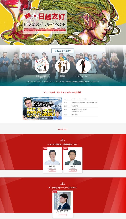 2024年10月10日(木)、サイトキャッチャー株式会社は初の海外M&Aピッチイベントとして「日越友好ビジネスピッチイベント」をベトナムで開催する運びとなりました。