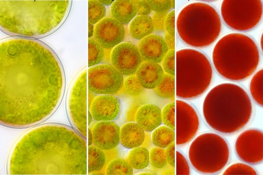 過酷な環境にさらされると細胞色が緑から赤へと変化するヘマトコッカス
