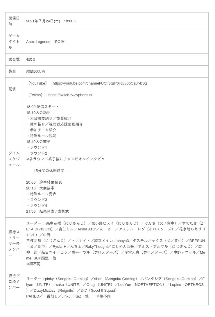 詳細はCypher CUP各公式アカウントよりご確認ください。