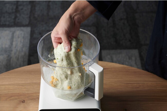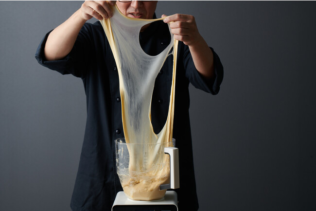 「家庭でできるプロレベルのパン」をコンセプトにパン教室を主宰している堀田シェフが、日々の研究のなかで「扱いの難しい高加水※1生地をこねられる家庭用ニーダー」を探していたところ、『BRENC』ニーダーに出会いました。しかし、付属の羽根では“こね”に時間がかかりすぎるなど、シェフの求めるレベルに達するには課題がありました。