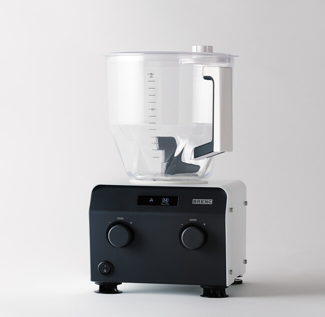 2022年7月に発売を開始した、粉とその他の材料を混ぜ合わせてこね上げる製品です。強いこねから弱いこねまで、使う人の目的に合わせて自由に生地づくりを楽しむことができます。長く使える堅牢でシンプルな設計に、生活に馴染むコンパクトなデザインです。『BRENC』の目指す姿を体現したフラグシップ製品です。