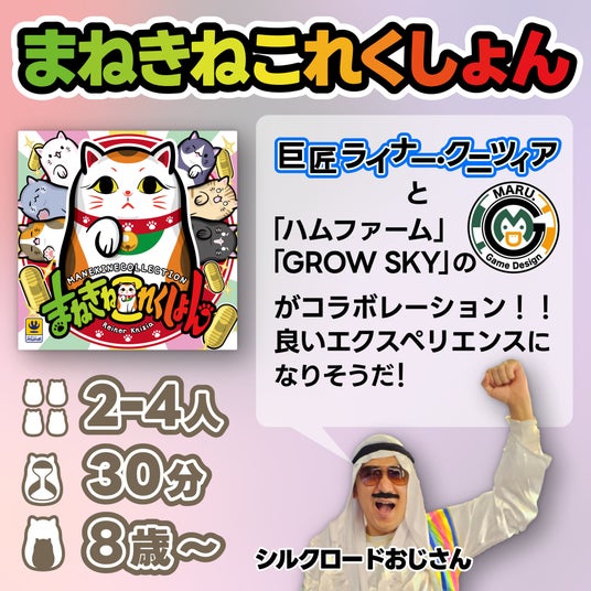 株式会社スタジオムンディ(東京都港区 代表取締役:竹下翼)は、新作ボードゲーム『まねきねこれくしょん』を2024年12月14日(土)に発売いたします。