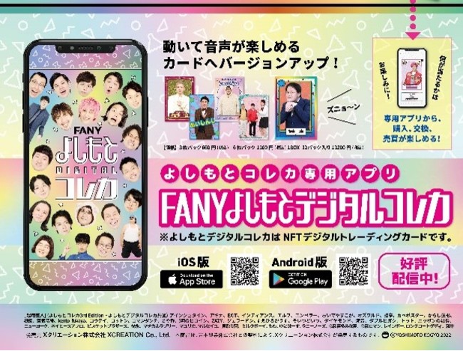 NFT/ブロックチェーンコンテンツの開発とサービスを行うXクリエーション株式会社(本社 : 東京都港区、代表取締役 : 河上 昌浩)と吉本興業株式会社(本店:大阪市中央区、代表取締役社長CEO:岡本 昭彦)は、「FANYよしもとコレカ3rd Edition」を、東京・名古屋・大阪のファミリーマート411店舗にて、5月7日(土)より期間限定で取り扱いを決定いたしました。