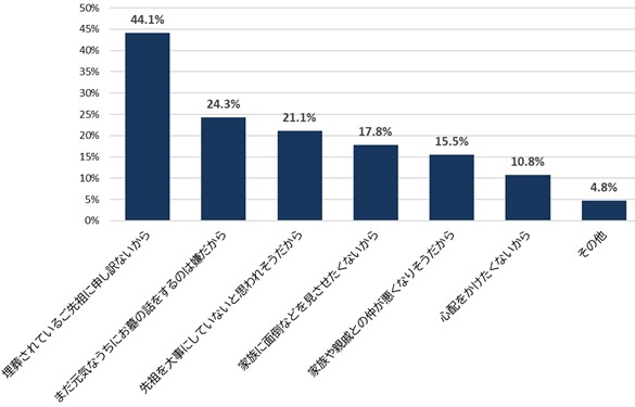 両世代のQ4で抵抗感があると答えた方にその理由を聞いたところ「埋葬されているご先祖に申し訳ないから」が44.1%でトップとなりました。