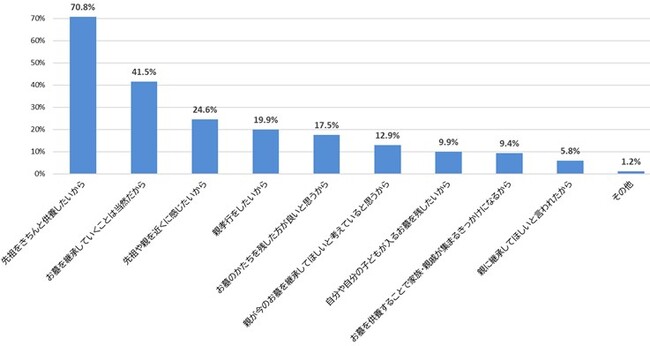 送り出す世代に代々受け継ぐお墓を継承したいと思う理由を聞いたところ、「先祖をきちんと供養したいから」が70.8%となり日本人の強い供養意識が表れる結果となりました。
