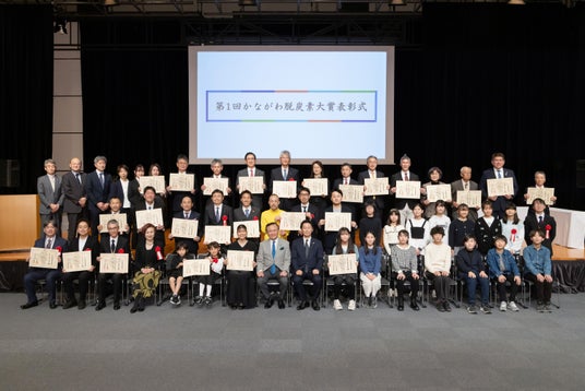 「かながわ脱炭素大賞」は、2050年脱炭素社会の実現に向けて、県民や事業者など、様々な主体と連携して「オール神奈川」で取り組んでいくため、脱炭素に関する優れた取組を行った個人や事業者、学校等の功績を称える、2024年度に創設された表彰制度です。