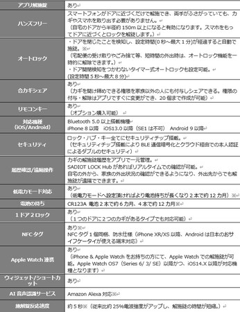 また、アプリを立ち上げることなく、スマホをかざすだけで簡単に解施錠することができる「NFC タグ」の追加や、手がふさがっていても声でカギの操作が可能なAmazon Alexa 対応やドアが閉まった事をセンサー検知して施錠するオートロックなどスマートロックの基本機能が大きく進化しました。