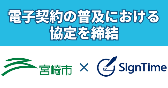 サインタイム株式会社(本社:東京港区 代表取締役:ジム・ワイザー)が提供する電子契約サービス「サインタイム」は、宮崎県宮崎市役所(市長:清山 知憲)と「電子契約の普及促進に係る協定」を締結いたしました。
