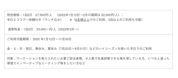 ※2022年1月中にワーケーション体験をご希望の方には早めにお知らせします。