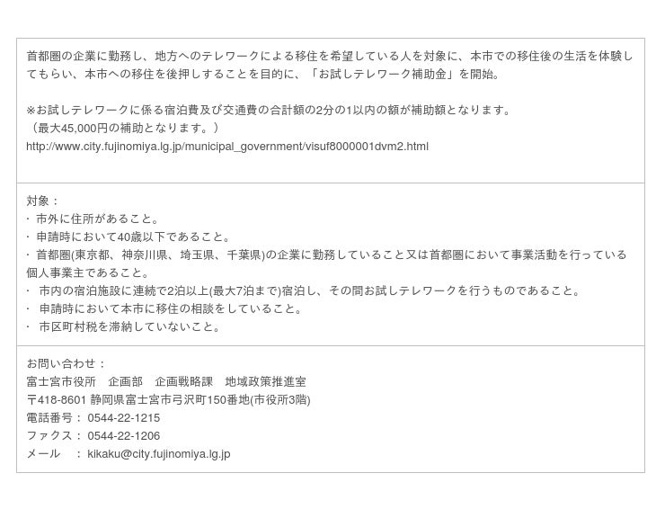 富士宮市の「お試しテレワーク補助金」を使ってさらにお得!
