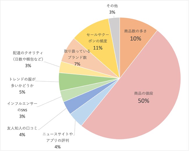 3位以降は、「商品数の多さ」「ブランド数」「トレンド」など、取り扱いに関する回答が多く集まった。