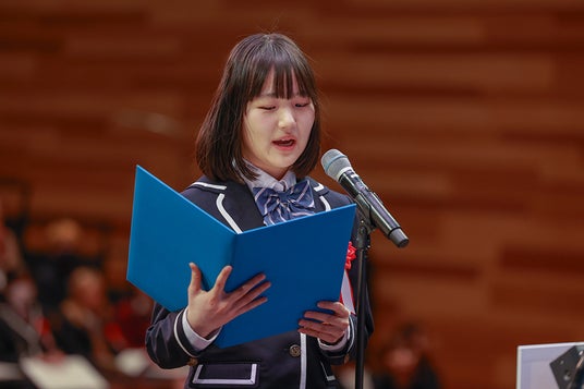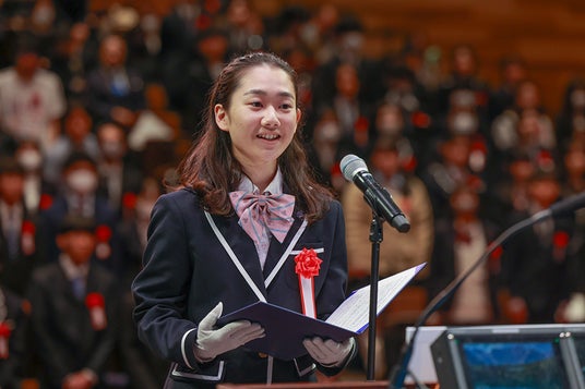 表彰の後、N中等部・N/S高それぞれの代表生徒による送辞・答辞で、在学中の思い出を振り返りながら、在校生・卒業生が互いにメッセージを送り合いました。