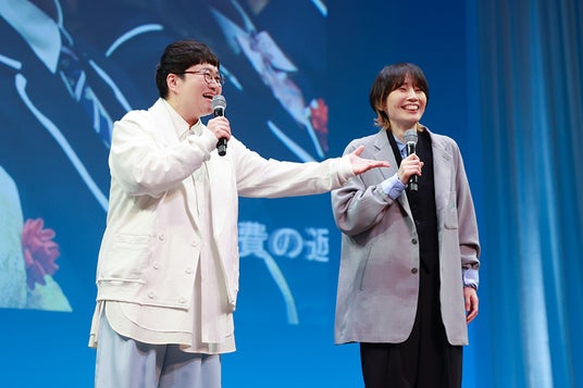 卒業式の最後には、サプライズゲストとしてお笑いコンビ・ハリセンボンの近藤春菜さん、箕輪はるかさんが登場し、卒業生への「贈る授業」を行いました。N高等学校・奥平博一校長とともに、「仲間」や「相方」の存在、「自分らしさ」を見つけることや自身を持つために必要なことなどをテーマにトークセッションし、これから新たな進路を歩む卒業生の励みとなるメッセージを贈りました。
