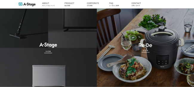 設立5年目を迎えたこの度、当社のサービスや事業内容をより一層ご理解いただけるよう、コーポレートサイトの構成やデザイン、メッセージを刷新いたしました。今後も、機能性と洗練されたデザインを両立させた製品ラインナップの「A-Stage」と、「くらしをリ・デザインする」をテーマにライフスタイルブランドとしてデザイン家電を展開する「Re・De(リデ)」の2ブランドを軸に、お客様の価値観に寄り添い、お客様の欲しいものを追求した製品開発を行っていきます。