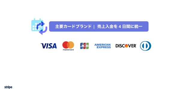 JCB 取引の売上の入金サイクルを 30 日から最短 4 営業日後に短縮し、Visa、Mastercard、American Express などの Stripe で扱える全てのカードブランドの入金日を同一にしました。全ての売上入金サイクルが 4 営業日になることで、キャッシュフローの向上をもたらすと共に、売上金の入金予測やトラッキングなどがこれまで以上に容易になります。