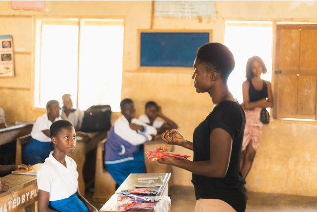 アフリカなどの発展途上国の貧困地域では、生理用品が購入できない女性たちが、古びた布や新聞紙などを代用しており、大変大きなストレスを抱えています。また、生理についての理解が乏しく、特に月経が始まる10代の学生たちは、性差別やいじめが原因で、生理中は学校を欠席したり、中退するなど、生理に関わる問題が深刻です。