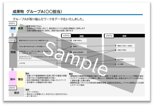 経営層・管理職・一般社員を対象にDXの本質と必要性、業務や組織にDXを取り入れる意義を丁寧に解説。SOAR分析(強み・機会・願望・成果)を活用して“ありたい姿”を具体化するなど全員参加型で進行しました。