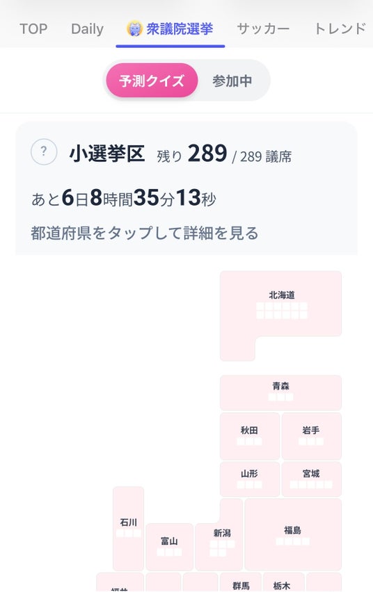 アプリ内の「衆議院院選挙」カテゴリより、都道府県を選択します。