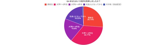 運転免許の取得時期としては、大学生の時期と回答した人が多く、特に大学1~2年生での取得が最も多く、次いで高校生、大学3~4年生と続きます。この結果は、学生生活や就職活動での利便性を重視する傾向が強いことを示しています。一方、社会人になってから免許を取得するケースも少なくなく、社会に出てから免許の必要性を感じる人も一定数いることが分かりました。