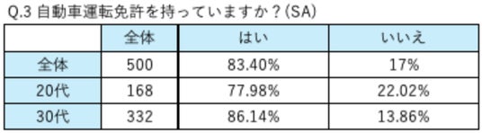 大町自動車学校グループは、2024年5月14日に全国の25歳から35歳の方々に対し「運転免許に関する意識調査」をインターネットリサーチで実施し、500名の有効回答を得ました。その結果を公表します。